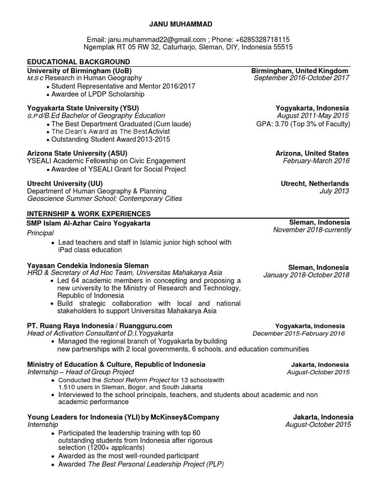 Cv Janu Muhammad 022019 Indonesia Geography University Of Oxford Acceptance Rate
